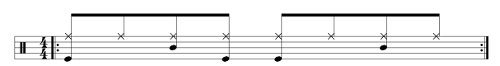 Hier ein längerer Achtel-Rock-Drum-Groove mit Variationen und Fills: ![]() Hier kannst Du ein passendes Übungs-Playalong für diese Noten herunterladen: Klick hier Nimmst Du zu obigem Drum-Groove die Bassdrum auf die Zählzeit "2+" hinzu, sieht das Ganze so aus (Variation): Im Gegensatz zu obigem längerem Beispiel, bei dem die Snare-Zählzeiten "2" und "4" nicht mit einer HiHat belegt sind (Anschlags-Spielweise RLRL), wird hier in diesem Beispiel die HH "durchgeachtelt". D.h. man spielt sie in aller Regel auf einer Hand durch. Bei den meisten wird dies die rechte Hand sein, während die linke Hand die Snare spielt. Weitere Schalgezug-Noten mit vielen Audio-Beispielen kannst Du hier preiswert herunterladen: Online Shuffle-Drums-Workshop auf www.blues-spielen.de |